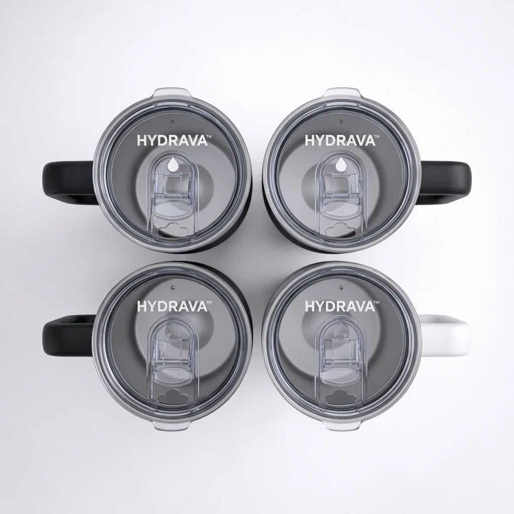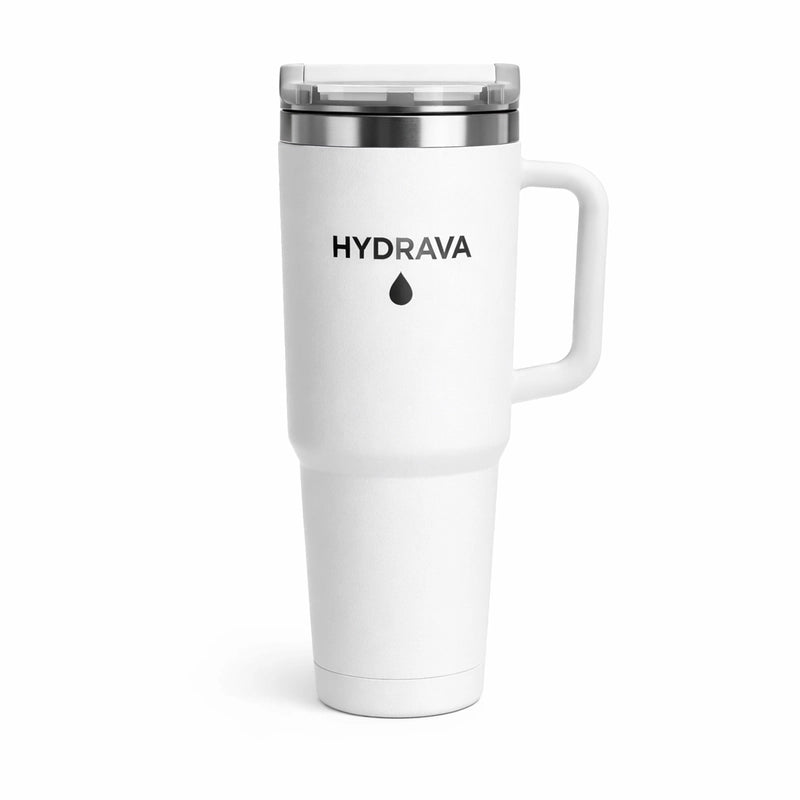 Le duo Hydrava™ est conçu pour s'adapter à chaque facette de votre vie dynamique. Il vous assure une hydratation constante, que vous soyez au bureau ou en mouvement, toujours avec une élégance raffinée.